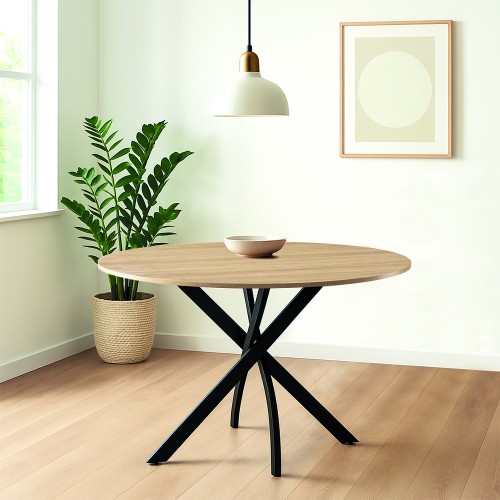 -5% Nuevo Quick view Add to cart Lista de deseos Mesa ROTED redonda 110/120 Precio regular 246,75 € -5% Precio 234,41 € Mesa redonda de comedor extensible, con acabado en melamina color roble amazonía. Patas metálicas rectas en color negro mate. Medidas...