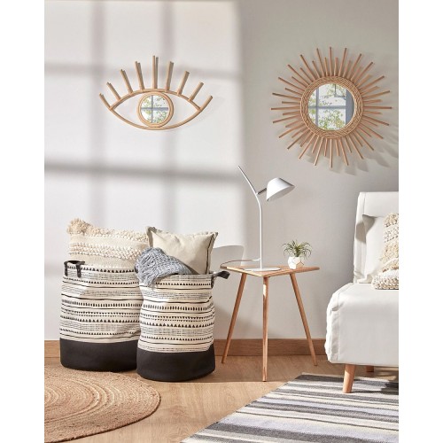 Espejo en forma de ojo con marco de ratán y acabado natural. Pieza de diseño 100% handmade, en la que el ratán está moldeado, tratado y pintado a mano.