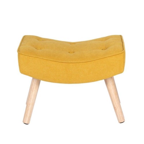 Reposapies tapizado en color mostaza con patas de madera de hevea.